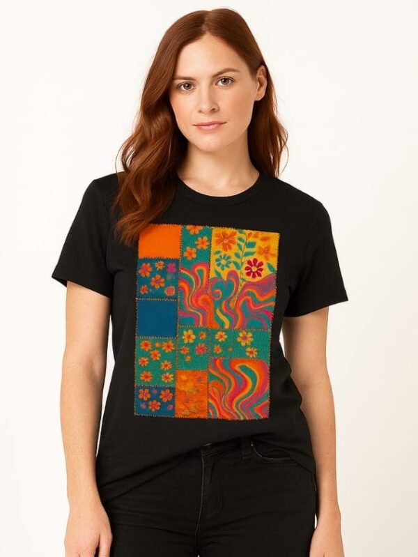Vibrant Patchwork Floral T-Shirt Design