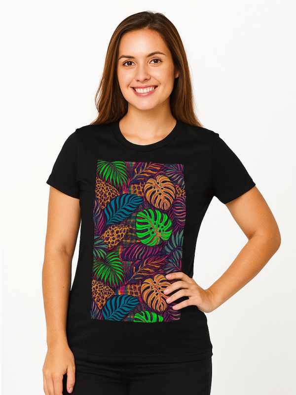 Wild Leaf and Leopard Print Graphic Tee
