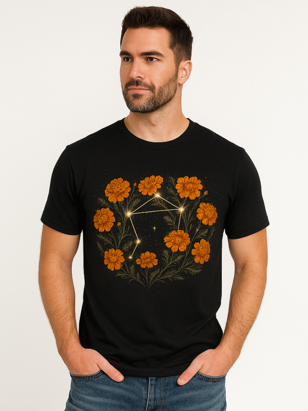 € 65.00A black tee that radiates cosmic energy—featuring a glowing constellation surrounded by delicate floral elements. Perfect for layering or standing out solo.