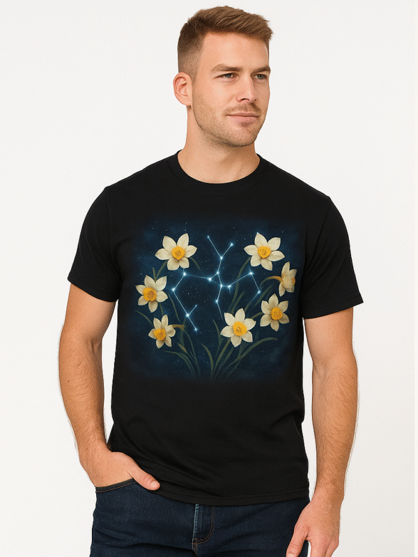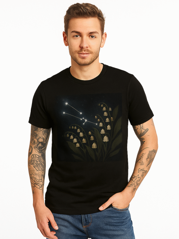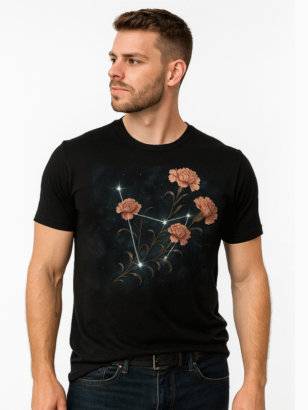 A black tee that radiates cosmic energy—featuring a glowing constellation surrounded by delicate floral elements. Perfect for Nature lovers and astronomy fans