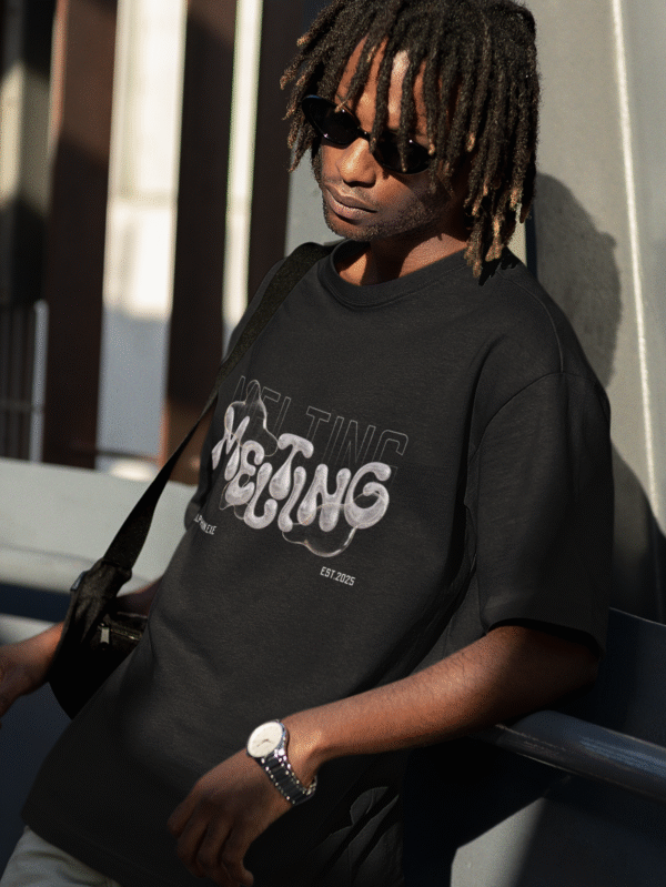 Turn heads with this black “MELTING” hoodie—where bold typography meets street-savvy drip. A moody essential for fall fits and urban flexing.